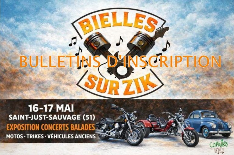 Expo Motos, Trikes et Vehicules anciens // Saint just sauvage 16-17 mai 2026 / Concerts / Balades !! Bulletins d’inscription : public, Stands, concessionnaires Ce matin samedi 10 janvier 2026,…