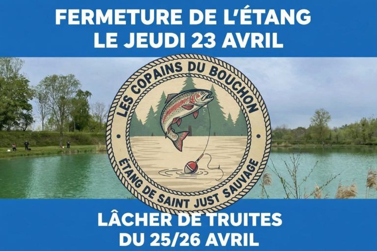 Les Copains De L’epuisette , l’association de Saint-Just-Sauvage qui gérait les lâchers de truites à l’étang municipal, sur la route d’Anglure fait une pause pendant l’année 2026.